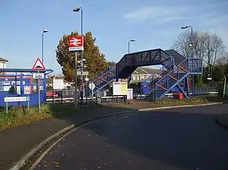 Northolt Park railway station is a National Rail station in Northolt, Greater London. It is in Cadogan Close and spans the boundary between the London Borough of Harrow and the London Borough of Ealing, with a footbridge connecting the north side (leading to Roxeth and South Harrow) to the south side (leading to Northolt and Greenford). South Harrow Tube Station on the Piccadilly line is 0.7 miles (1.1 km) by foot from Northolt Park Station. Northolt Underground station on the Central line is less than 1 mile (1.6 km) away and is accessible by the 140 and SL9 buses from Northolt Road.