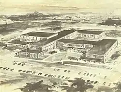 In order to relieve overcrowding in local schools adjacent to major federal installations or defense projects, President Eisenhower signed Title 45 Public Law 81-874 "ASSISTANCE FOR SCHOOL CONSTRUCTION" with $1,500,000 contributed to Montgomery County.[3][4] It was decided to build a new high school along 30 acres on Old Bladensburg Road (later known as University Boulevard) in Silver Spring with planned opening in fall 1956. The two-story brick, tile, and glass rambler cost $1,955,143, with a student capacity of 1425. At its dedication Arthur S. Adams, president of the American Council on Education, described the school as a "Magnificent Building" to a crowd of 1000 visitors.[5] The Northwood area grew prior to construction. The new school became a combination junior/senior high school named Northwood Junior Senior High School with new principal Edward (Ted) A. Bartlett. Principal Bartlett was Harvard educated, a World War II veteran, and the former basketball coach from Winchester High School in Winchester, Massachusetts.[6]