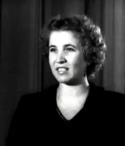 Novela Serpionova was a Ukrainian radio announcer who became the very first television presenter in the history of television in Ukraine.[1] She joined the team of Ukrainian Television (UT) at the Kyiv Television and Radio Center in 1951, but returned to radio (in the same building but on a different floor) just a year later.[2] As a result, she was largely forgotten by the Ukrainian population, who largely remembered Olga Danylenko and Olena Nikolaeva as the first presenters.[3]