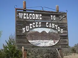 Nueces Canyon sign off scenic Texas State Highway 55