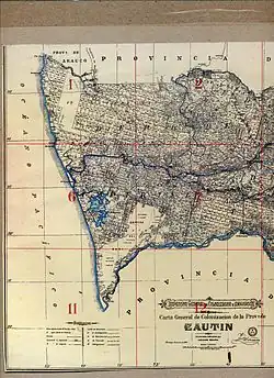 Mapuche lands around the south of the Bío-Bío River began to be bought by non-Mapuches in the late 18th century, and by 1860 land between Bío-Bío and Malleco River was mostly under control of Chileans.[7][8] The Chilean wheat boom increased pressure to acquire lands in Araucanía by Chileans and led to numerous scams and frauds against Mapuches.[9] A limited number of speculators obtained control over vast lands through frauds and maintained control over their assets with the aid of gunmen.[10]
