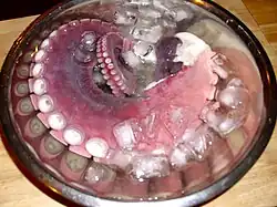 Lightly boiled octopus arm that turned a bright purple