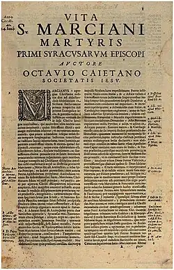 'Life of Santi Marcianus, martyr, first bishop of Syracuse' from Gaetani's Vitae Sanctorum Siculorum | |