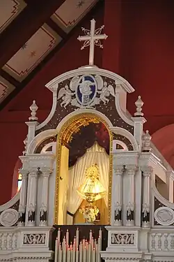 The image of Our Lady of Peñafrancia at the Quadricentennial Arch in Naga Metropolitan Cathedral during the Tercentenary Celebration of the devotion.