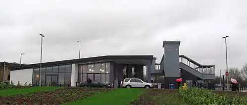 Oxford Parkway railway station is a railway station at Water Eaton, Oxfordshire, on the Oxford–Bicester line. Full regular weekday service began on 25 October 2015,[2] although the first passengers travelled the previous day on a Sunday timetable.[3]