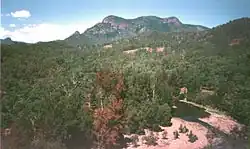 The Halls Peak camping area is located off Raspberry Road, east of Armidale. The very steep 4WD trail, suitable only for vehicles with a low range, continues on down to a good camping area on the Chandler River. The new facility consists of thirteen camping sites with pit fires, tables, barbecues and toilets.[13] There are several mines in this area and the Halls Peak Mine may be seen from near the camping area.