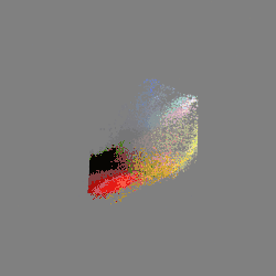 But this creates a heavy dependence between the image pixels and its adaptive palette. Assuming a limited 8-bit depth graphic display, it is necessary to load a given image's adaptive palette into the color hardware registers prior to loading the image surface itself into the frame buffer. To display different images with different adaptive palettes, they must be loaded one by one, as in a slideshow. Here are samples of four different indexed color images with color patches to show their respective (and largely incompatible) adaptive palettes: