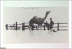 F and M Collins owned Parakylia in 1912 and were selling both wool and bullocks to local markets.[15] By 1915 the 1,417-square-mile (3,670 km2) property was unoccupied again and open for application.[16] The property was on the market in 1923, when it was owned by Joseph Timms,[17] at which time it had an area of 1,314 square miles (3,403 km2).[18] It had been subdivided into 23 paddocks and was enclosed by a mix of five- and six-wire fences, but was passed in at £10,760.[17] Parakylia Pty. Ltd. was formed in 1927 to acquire the property. The company was established with £60,000 capital.[19]