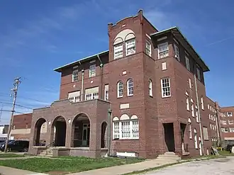 The Paris Elks Lodge No. 812 Building is a historic building located at 111 E. Washington St. in Paris, Illinois. The building served as a meeting place for the Paris lodge of the Benevolent and Protective Order of Elks. The building was constructed in 1927, 25 years after the Paris Lodge was chartered. Architect Everett Blackman, a member of the lodge, designed the building in the Mediterranean Revival style. Blackman's design features an arcade loggia enclosing the front entrance and a square tower with a parapet roof designed to resemble elk antlers. The building's amenities included a bar and ballroom on the second floor, a bowling alley in the basement, and meeting rooms for the lodge. The third floor of the building housed rooms for the adjacent France Hotel; it was connected to the hotel by a stone walkway and cannot be accessed from the lower floors. The Elks used the building until the lodge filed for bankruptcy in 1978.[2]