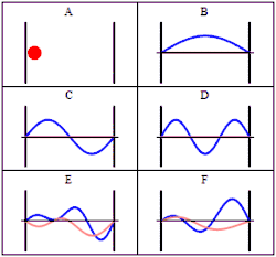 The amplitude of the wave function at a given position is related to the probability of finding a particle there by . The wave function must therefore vanish everywhere beyond the edges of the box.[1][4] Also, the amplitude of the wave function may not "jump" abruptly from one point to the next.[1] These two conditions are only satisfied by wave functions with the form[5] where and for positive integers . The simplest solutions, or both yield the trivial wave function , which describes a particle that does not exist anywhere in the system.[6] Here one sees that only a discrete set of energy values and wave numbers k are allowed for the particle. Usually in quantum mechanics it is also demanded that the derivative of the wave function in addition to the wave function itself be continuous; here this demand would lead to the only solution being the constant zero function, which is not what we desire, so we give up this demand (as this system with infinite potential can be regarded as a nonphysical abstract limiting case, we can treat it as such and "bend the rules"). Note that giving up this demand means that the wave function is not a differentiable function at the boundary of the box, and thus it can be said that the wave function does not solve the Schrödinger equation at the boundary points and (but does solve it everywhere else).