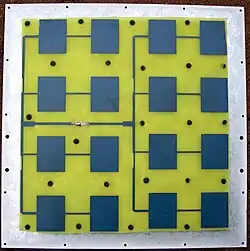 A patch antenna is a type of antenna with a low profile, usually consisting of a printed circuit board. It consists of a planar rectangular or circular sheet or "patch" of metal, mounted over a larger sheet of metal called a ground plane. It is the original type of microstrip antenna described by Howell in 1972.[1]