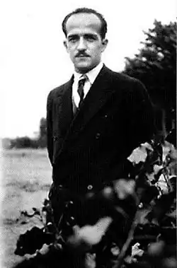 Borduas was born on November the first, 1905, in Saint-Hilaire, Quebec (a small village 50 kilometres from Montréal). He was the fourth child of Magloire Borduas and Éva Perrault. As a child, he engaged in bricolage - his first known artistic activity. He received five years of formal elementary school education, (which ended at the age of twelve) and some private lessons from a village resident.[5] In his teens, Borduas met church painter and decorator Ozias Leduc, and Leduc agreed to take the young artist as an apprentice. Leduc provided Borduas with basic artistic training, teaching him how to restore and decorate churches. Leduc arranged for Borduas' instruction at the École Technique, in 1919, in Sherbrooke, Quebec. In 1923, assisted by a scholarship Leduc had secured for him, he enrolled in the École des Beaux-Arts de Montréal, continuing to work for Leduc at the same time. He received prizes for his paintings at both of these institutions. Despite discord between Borduas and the school administration, he continued his studies at Leduc's urgings.[1]