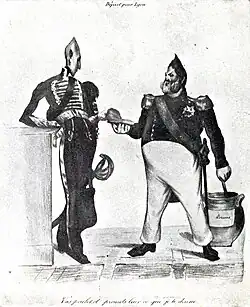 - ^ "Planche de la lithographie mensuelle" [Monthly lithograph board]. La Caricature (in French). April 17, 1834. Archived from the original on October 17, 2021.