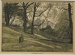 From 1903, until her death there in February 1929,[7] Pembroke Lodge was tenanted by Georgina, Dowager Countess of Dudley, a close friend of Queen Alexandra.[8] There is a headstone in Pembroke Lodge's gardens to the grave of her dog, Boy, who died in 1907.[9]