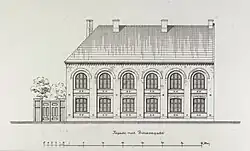 The southeastern part of the property, with the Philip de Lange House, was in October 1864 sold to Prinsessegades Betalinghsskole. The building that now hides the Philip de Lange House from the street was constructed in 1865.[1]