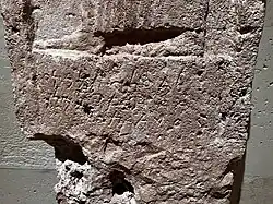 The same 1902-03 unofficial excavations uncovered a number of additional steles, which were acquired by the Louvre. One of these, in three fragments, later known as KI 14 or RES 307, was dedicated to Baalyaton, priest of Milkashtart. On the upper part of the arched stele appears a dedicant wearing a polo shirt raising his hand in a sign of adoration. His feet and the inscription are on another fragment of the stele.[4]