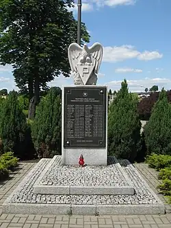 During the joint German-Soviet invasion of Poland, which started World War II, Piekary was captured by Germany in September 1939, and then was under German occupation until 1945. Already in September 1939, the Germans carried out several executions of Poles (see Nazi crimes against the Polish nation). On September 6, Germans murdered three Poles in the present-day district of Brzozowice.[7] On September 17, the Freikorps murdered two miners, one local official and one former Silesian Uprisings participant in Piekary.[8] Several miners from the present-day district of Brzozowice were murdered in nearby Lasowice (present-day district of Tarnowskie Góry).[9] Local teachers were among Polish teachers murdered in Nazi concentration camps.[10] The Polenlager No. 188, a forced labour camp for Poles, was operated in the city.[11] During the occupation, the city's main street, Bytomska, was renamed Adolf Hitler Street (Adolf-Hitler-Straße).[6]