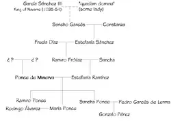 Of Ponce's children, Ramiro was his primary heir, even claiming, without any apparent royal approval, his father's title of count, but he never returned to favour in León. Ponce's daughters, Sancha and María, usually surnamed Ponce as a patronymic (from the Latin Poncii or Pontii), married Pedro Garcés de Lerma, a Castilian, and Rodrigo Álvarez, a Galician, respectively; both were wealthy and powerful men. Sancha, by Pedro, had a son, Gonzalo Pérez, who became the abbot of Husillos in Castile.[47]