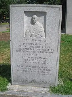 A memorial placard of Pope John Paul II, sometimes called Papal Mass Plaque,[1] is installed in Boston Common in Boston, Massachusetts, United States.