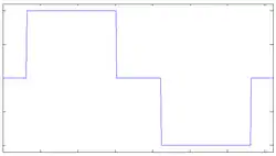 Fourier analysis reveals that a waveform, like a square wave, that is anti-symmetrical about the 180 degree point contains only odd harmonics, the 3rd, 5th, 7th, etc. Waveforms that have steps of certain widths and heights can attenuate certain lower harmonics at the expense of amplifying higher harmonics. For example, by inserting a zero-voltage step between the positive and negative sections of the square-wave, all of the harmonics that are divisible by three (3rd, 9th, etc.) can be eliminated. That leaves only the 5th, 7th, 11th, 13th, etc. The required width of the steps is one third of the period for each of the positive and negative steps and one sixth of the period for each of the zero-voltage steps.[19]