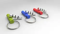 Pressy is available in four colors - black, blue, red, and white.[6] The device comes with a key-ring carrier that can be used to keep the device when not being used.[12] Pressy application can also be accessed through the media button on headphones when headphones are plugged into the phone.[1]