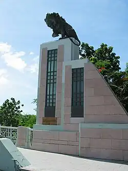 An 1818 map[a] of the city of Ponce recorded by historian Eduardo Neumann Gandia shows that the site currently occupied by Puente de los Leones was a regular cross-way over Rio Portugués between the eastern flatlands and the village of Ponce to the west.[8] The first permanent bridge was designed and built in 1900 with funds of the Ponce Municipal Government.[9][b] An 1899 map titled "Ponce Harbor Porto Rico, Map No. 911", by Otto Hilgard Tittmann (b.1850 - d.1938) of the U.S. Coast and Geodetic Survey and published by Julius Bien & Co Photo Lithographers, New York, New York, shows a bridge over Río Portugués at the road from Ponce to Guayama via Calle Cristina, namely today's (2018) Puerto Rico Highway 1.[10] In 1950, it was named "Puente Blas Silva" (Blas Silva Bridge) in honor of the outstanding architect from Hormigueros who lived most of his adult life in Ponce and designed many structures in the city.[11] The bridge was rebuilt in 1990,[12] and reopened in 1992[13] at which point it was renamed Puente de los Leones as part of the festivities of the 300th anniversary of the founding of the city.[14][15]