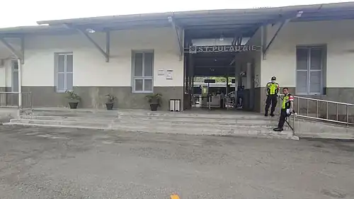 Pulau Aie Station (PLA), also spelled by its old name Puluaer Station or in Malay as Pulau Air Station, is a class-I railway station located in Pasa Gadang, Padang Selatan, Padang, West Sumatra, Indonesia. It is the first railway station built in the city, situated quite close to the historic old town of Padang. Located at the altitude of +2 m, it is operated by the Regional Division II West Sumatra of Kereta Api Indonesia as a part of railway line reactivation throughout West Sumatra.[1] It has two railway tracks with original line continues southwest to the old port of Muaro, but the line is not reactivated. Since 2007, the government of Padang City officially designated the station as a cultural property.[2]