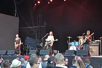 Quicksand is an American post-hardcore band from New York City, founded in 1990. Their debut self-titled EP was followed by two major-label albums, Slip (1993) and Manic Compression (1995). Quicksand's sound has been compared to that of post-hardcore bands Fugazi and Helmet.[2] The band supported their releases with extensive touring but fell short of the mainstream success anticipated by their labels. These factors and internal stress led them to separate first in 1995 and again in 1999 following a failed year-and-a-half reunion.[3] In June 2012, Quicksand reunited for a special one-night performance and since has been playing additional live shows. The band's third album (and first full-length in 22 years), Interiors, was released on November 10, 2017, and it was followed four years later by their latest album Distant Populations (2021).