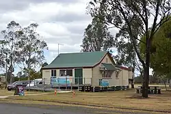 Quinalow Public Hall is on the corner of Daly Street and Pechey Maclagan Road (27°06′40″S 151°37′23″E / 27.1110°S 151.6230°E).[19]