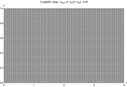 The logistic map, pictured here, was a seminal discovery by May that demonstrated how even a simple equation could result in chaos.