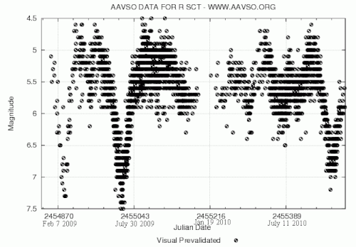 - AAVSO: Quick Look View of AAVSO Observations (get recent magnitude estimates for R Sct)