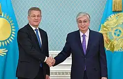 Khabirov with Kazakh President Kassym-Jomart Tokayev, 28 September 2021