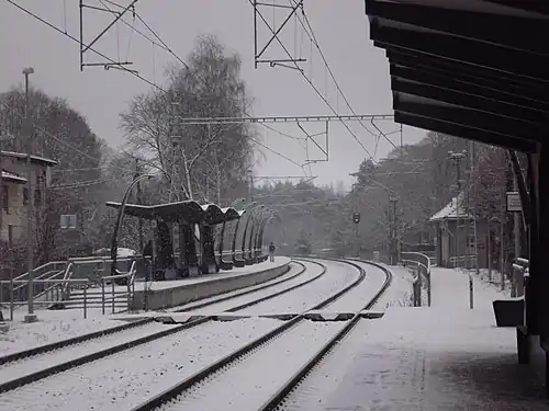 Rahumäe railway station (Estonian: Rahumäe raudteepeatus) is a railway station serving Rahumäe, a subdistrict of the Nõmme district of Tallinn, Estonia. Rahumäe has approximately 3000 residents.