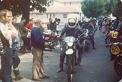 The competition was strongly associated with the organisation, engineering skills and hospitality of Roland and Ginette Roussel of the Union Motorcycliste Paloise,[1][3][4] and with their retirement and the withdrawal of long-time sponsor, French oil company Elf, by the end of the 1980s, the competition was no longer viable and closed. In 1974 and 1975, a British government Central Office of Information film called Pattern of People, designed to promote British industry, was set at the Circuit des Pyrénées.[4]