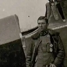 While spending a period gaining experience flying reconnaissance for Flik 1, he survived a landing accident on 31 July 1914.[1] He was awarded the Bronze Military Merit Medal on 11 September 1914.[4] He was then assigned to Flik 13 as a recce pilot, senior pilot, and second in command in late November 1914.[6] It was while flying his 49th sortie that he was brought down by a snow storm and captured by the Russians on 16 February 1915. He and his observer had managed to burn their plane; on the 22nd, they escaped. They spent the next two months dodging the Russians, finally repatriating themselves upon the successful Austro-Hungarian Gorlice-Tarnów Offensive capture of Lemberg on 22 June. While amongst the missing, Stojsavljevic was awarded the Iron Cross Second Class on 28 May 1915. The Military Merit Cross followed on 19 July 1915.[4]