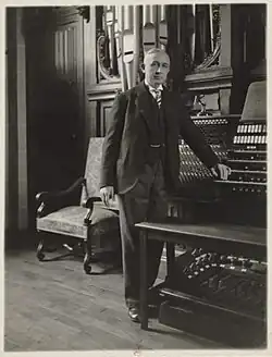 Marcel Dupré at his home in Meudon in front of the Cavaillé-Coll organ previously owned by Guilmant