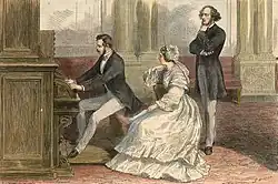 G. Durand, 1842: engraving of Prince Albert playing the organ in the Old Library in Buckingham Palace in the presence of Queen Victoria and Felix Mendelssohn