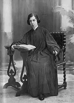 Regina Quintanilha (1893-1967) was the first Portuguese woman to obtain a law degree at the University of Coimbra.[1] Despite the law prohibiting women to practise law, on 14 November 1913 she received authorization from the President of the Supreme Court of Justice to do so and became the first female lawyer in Portugal.[2]