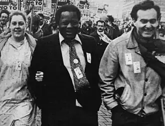George Roucou, marching to freedom, with his wife Kay and Workers Against Racism organiser Charles Longford