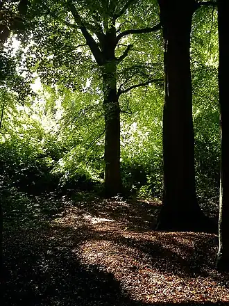 This small patch of forest, was formally presented to Aarhus in 1395, by Queen Margaret I.[1] Riis Skov was the first public forest in Denmark, where forests traditionally were owned and managed by the royal family or the nobility and in some cases ordinary farmers. Timber and firewood were very important resources in former times, needed for shipbuilding, house construction and various other important structures, or simply for heating and cooking. Although Riis Skov was a public forest, there was still active forestry going on until around the year 1800, when the large oaks were cut and used for quay-building in the Aarhus harbour. A few of them are still left, as some of the oldest trees in the forest. The forestry aspect gradually diminished and Riis Skov was increasingly viewed as a recreational area by the citizens.