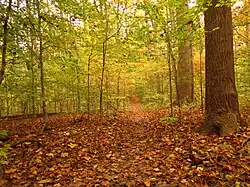 The Rock Creek Park Act authorized the purchase of no more than 2,000 acres (810 ha) of land, extending north from Klingle Ford Bridge in the District of Columbia (approximately the northern limit of the National Zoo), to be "perpetually dedicated and set apart as a public park or pleasure ground for the benefit and enjoyment of the people of the United States".[8] The Act also called for regulations to "provide for the preservation from injury or spoliation of all timber, animals, or curiosities within said park, and their retention in their natural condition, as nearly as possible".[9] Rock Creek Park is the oldest natural urban park in the National Park System.[10] Park construction began in 1897.[5]