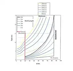 The tunnel support guidelines based on RMR were provided originally in the form of a table giving support recommendations for a tunnel span/diameter of 10 meters. In view of the improving technology for rock bolting, shotcrete and steel ribs, it was left to tunnel designers to modify these guidelines for other tunnel sizes, which served its purpose well. Today, after 40 years of use, it has become apparent that it would be convenient for practical tunnel designers to have charts for the selection of rock support as a function of both tunnel size and rock mass quality. This is depicted in the chart below (see Lawson 2013).
