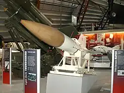 The museum holds a large collection of missiles and rocket-powered weapons, including several rare German World War II types. The majority are located in the National Cold War Exhibition, with the German collection on display in Hangar 1.