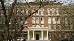 The four-storey building of the Academy was built in the early 1950s according to the standard project of L. A. Stepanova.[4] Initially, it housed School 96 of Kievsky district of Moscow.