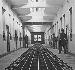 In addition, the 1930s saw Sasakawa take the helm of the Kokusui Taishu-to, or Patriotic People's Party (PPP).[9] This small organization was one of the many right-wing groups that sprang up in Japan in the lead-up to World War II.[10] It was in this connection that he first met Yoshio Kodama, who was at that time a member.[11] In 1935, Sasakawa and twelve other leading members of the PPP were arrested and held for three years on suspicion of having ordered the blackmail of several leading companies, such as Takashimaya, the Hankyu Railway, and Tokyo Life Insurance.[12] Though he was eventually acquitted, the jail time and the subsequent appeals process took a total of six years, leading up the opening year of World War II.[13] In the end, the prosecution itself revealed that the charges against him had been based more on perception of the PPP as "dangerous", than on actual evidence of blackmail.[14]