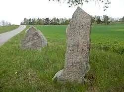 Erik Brate noted that the runestone lacks a Christian cross[4] and read the last runes as siþi þur, which he interpreted as Siði Þorr,[4][2][3] "Thor, make it right" meaning "May Thor safeguard".[2] The verb has also been taken as a reference to seiðr, that is, "May Thor work magic", with the same intention.[5] Brate interpreted the runic cross as a pagan statement against the newly arrived Christian faith,[4] and this has led to the stone becoming one of the most commonly cited runic inscriptions in popular science publications.[3] The inscription has been discussed by scholars such as Henrik Williams (1996) and Anders Hultgård (1992, 1998), but in spite of the fact that Elias Wessén (1935) considered it untenable, the interpretation was not seriously challenged until 2010.[3] A more recent interpretation reads the runes as "in Sweden" instead.