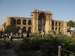 The details and dates surrounding Said Otaliq Madrasa's original construction appear to be disputed. Some sources, citing the historical text Fathnomayi sultoniy by Mir Olim Buxoriy, state that the madrasa was built in the 19th century and was designed by master architect Ahmad Mamat Buxoriy. The madrasa was supposedly constructed under the patronage of Said Otaliq, the father-in-law of the then-Emir of Bukhara, Haydar bin Shahmurad. Said Otaliq also served as governor of Denov for several years.[2] Other sources, however, claim that the madrasa is named after the late Naqshbandi Sheikh Hazrat Xoja Alouddin Attor, who died in Denov in 1400 AD.[3][4] The official Uzbek government's heritage list describes Said Otaliq Madrasa as being built in the "16th century,"[1] which aligns with various other claims that the school was originally built by descendants of Alouddin Attor between the 15th and 17th centuries.[2]