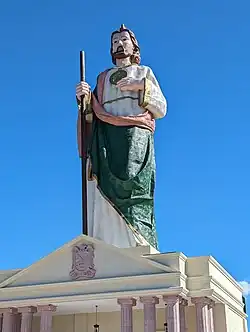 The statue was inaugurated on September 26, 2023, by the Governor of Sinaloa Rubén Rocha Moya and the Mayor of Badiraguato José Paz López Elenes.[1] It is the ninth largest statue in Mexico,[4] and the largest statue of Jude Thaddaeus in the world.[1] The statue was selected by the people of Badiraguato, who chose the statue of Judas Thaddaeus over depictions of the Virgin Mary and Jesus Christ.[1] The monument was donated by an unnamed individual.[3][2]