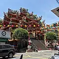 The Sanchong Yi Tian Temple (Chinese: 三重義天宮; pinyin: sānchóng yì tiāngōng) is a traditional Taoist temple located in Sanchong District, New Taipei, Taiwan. Built in 1965, the sea goddess Mazu is the principal Deity worshiped at Sanchong Yi Tian Temple. The temple is the center of religious worship in the surrounding areas of Sanchong and Luzhou. It is also known locally as Cat Temple as it is famous for providing a shelter for neighborhood stray cats.[1] The front stairway leading to the temple is more than 20 m (66 ft) in length and several red lanterns adorn the front gate. It is believed that these lanterns initially attracted the felines to the temple.[2][3]