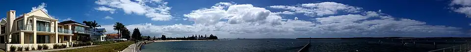 Sandringham is a quiet residential suburb on the western shore of Botany Bay, at the mouth of the Georges River. Cook Park runs along the eastern and southern border and the beach stretches from Dolls Point to Sandringham Bay. The Georges River Sailing Club sits on the foreshore. A small group of shops is located at the intersection of Clareville Avenue and Russell Avenue, on the border with Sans Souci and Sandringham.